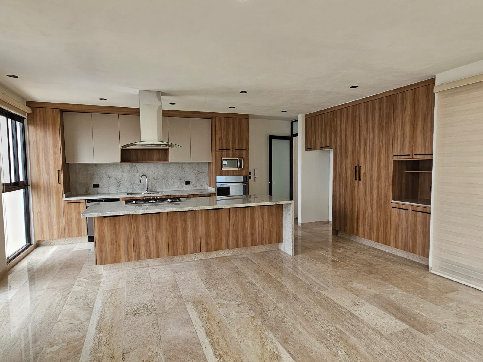 Espacios abiertos, tonos neutros y soluciones ocultas. Ideal para quienes buscan una cocina sofisticada y sin distracciones visuales. Incluye barra de granito economico.