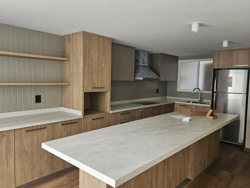 Cocina única, herrajes de calidad y una vibra acogedora, calidez y autenticidad a cualquier espacio sin perder funcionalidad. Incluye barra de granito economico.